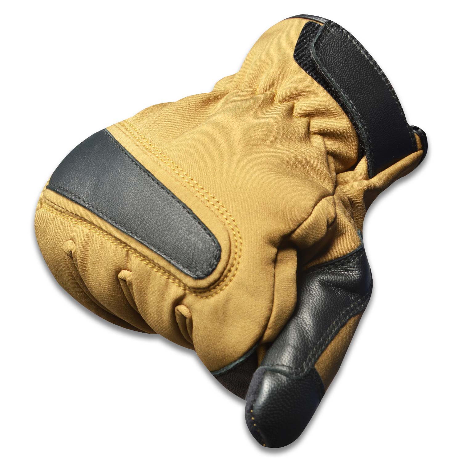 Motor Bike Glove. Palm Side soft shell fabric. Goat skin leather reinforcement.