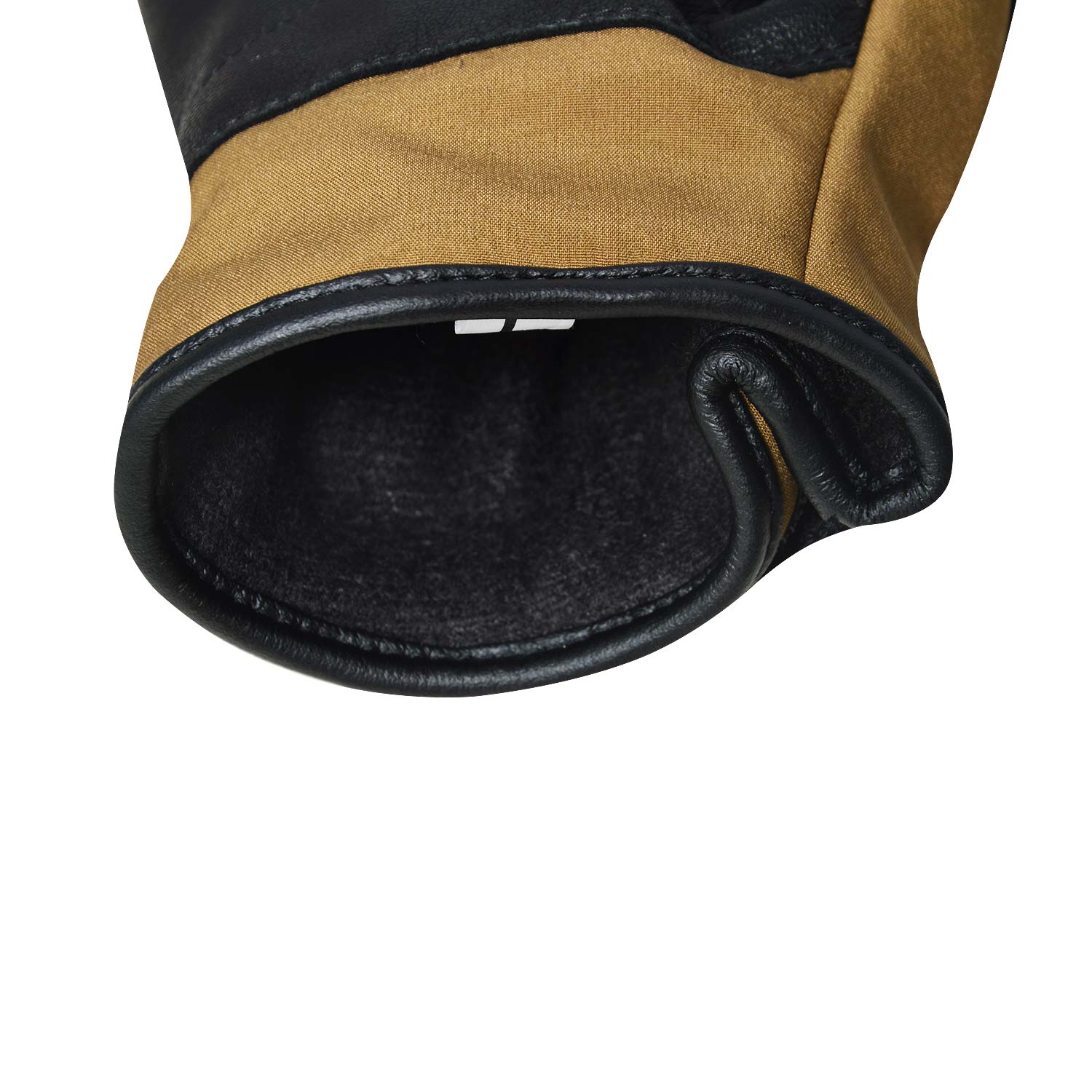 Back Side soft shell fabric. Goat skin leather. Foam padding Knuckle area. Elastic on Wrist.