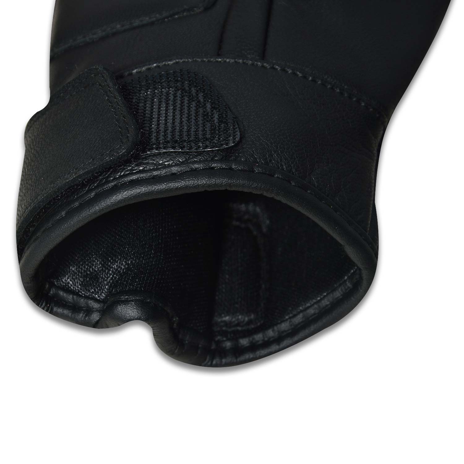 Back Side Goat skin leather, Plastic Hard Knuckle with leather top Lamination. Rubber padding on back side of finger. Zip with Hook and loop closure.