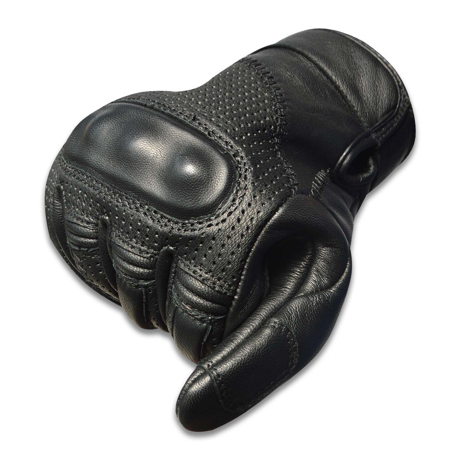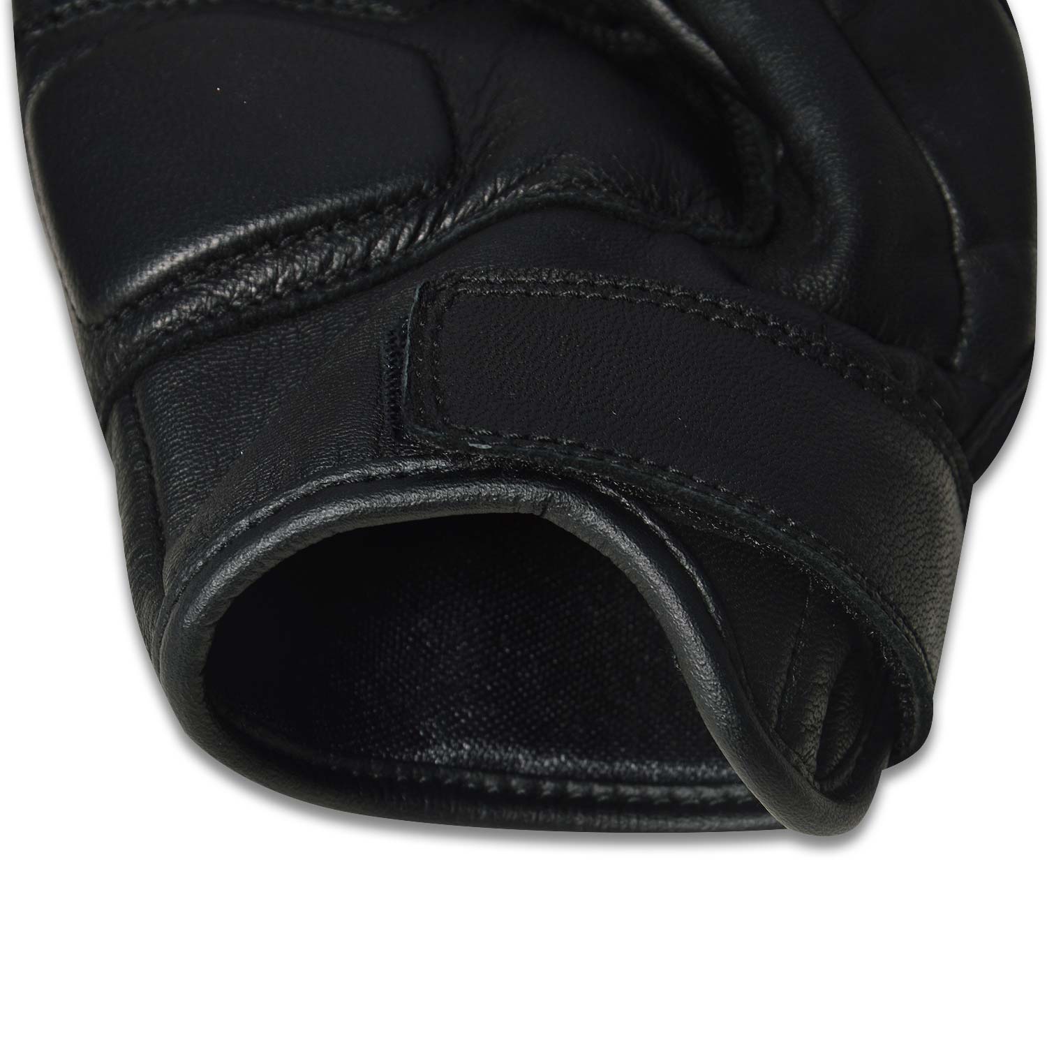 Back Side Breathable goat skin leather with Leather hard knuckle. Rubber padding on back of fingers.